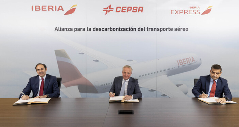 Los presidentes de Iberia e Iberia Express y el consejero delegado de Cepsa han firmado, este 24 de enero, un acuerdo para avanzar en la descarbonización del sector aéreo, a través del desarrollo e investigación de combustibles de origen sostenible y otras alternativas energéticas como el hidrógeno renovable y la electricidad. El objetivo es fomentar la movilidad sostenible de aviones y de la flota de vehículos que les prestan servicios en aeropuertos.