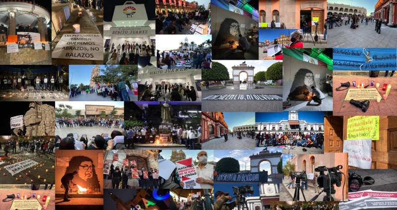 La mayoría de las movilizaciones pacíficas ocurrieron por la tarde noche por ello en los encuentros se encendieron veladoras y los asistentes, vistieron de luto. Además los trabajadores de la prensa manifestantes portaron fotografías de sus colegas asesinados y pancartas con la exigencia de “¡No más periodistas asesinados”!