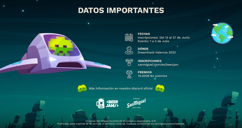 En esta nueva edición de la Beer Jam by San Miguel participarán equipos de hasta 4 personas con el objetivo de transformar sus ideas en realidad y presentar una demo de sus proyectos. Los ganadores del evento recibirán un premio de 5.000€, más 7.000 € para el desarrollo del videojuego, y los dos equipos finalistas recibirán 2.000€ y 1.000€, respectivamente.