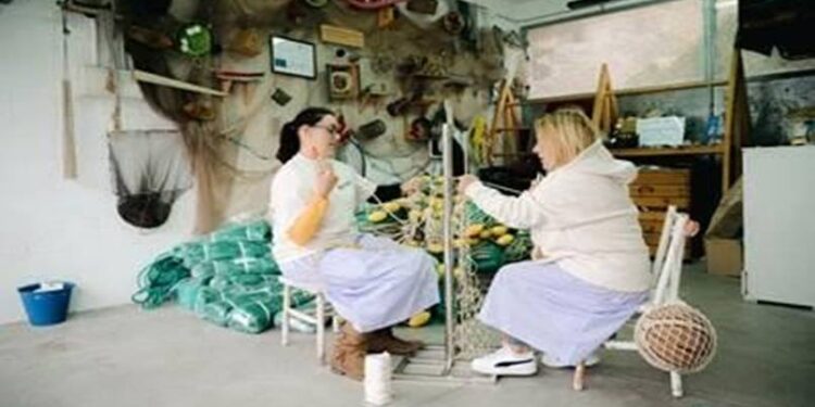 Para ello, colaborando con las redeiras gallegas, profesionales que se dedican a la confección, reparación y mantenimiento de artes y aparejos de pesca, convierte, de manera artesanal, las redes de pesca recogidas del mar en redes para canastas de baloncesto y porterías.