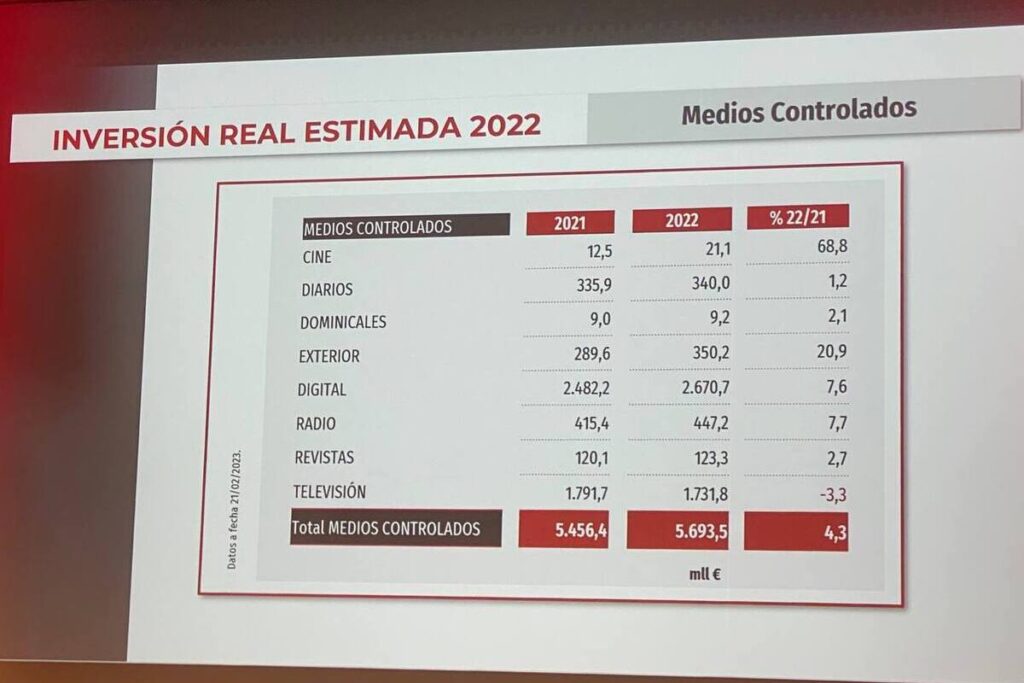 El mercado de la inversión publicitaria de 2022 ha registrado un ligero frenazo respecto a la evolución del curso anterior, marcado por la recuperación económica tras la pandemia. No obstante, sus cifras se han incrementado un 4,7% en relación a 2021, alcanzando un total de 12.214,2 millones de euros.