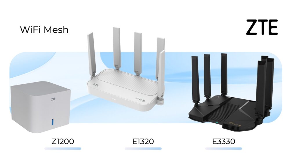 ZTE, proveedor líder mundial de equipos de telecomunicaciones, soluciones de red y uno de los principales proveedores de smartphones, lanza en el mercado español tres modelos diferentes de router WiFi Mesh: el Z1200 y el E1320, además del modelo E3330 que también estará disponible en tiendas próximamente.