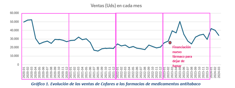 Cofares ha identificado en sus datos que, a partir de este hito, la demanda de medicamentos antitabaco ha crecido de forma significativa, compensando la tendencia decreciente arrastrada desde la pandemia, hasta llegar a una demanda mensual media de 33.257 unidades. Un año después de la aprobación de la financiación del medicamento, en enero de 2024, se detectó un nuevo pico de demanda que superó las 40.000 unidades.
