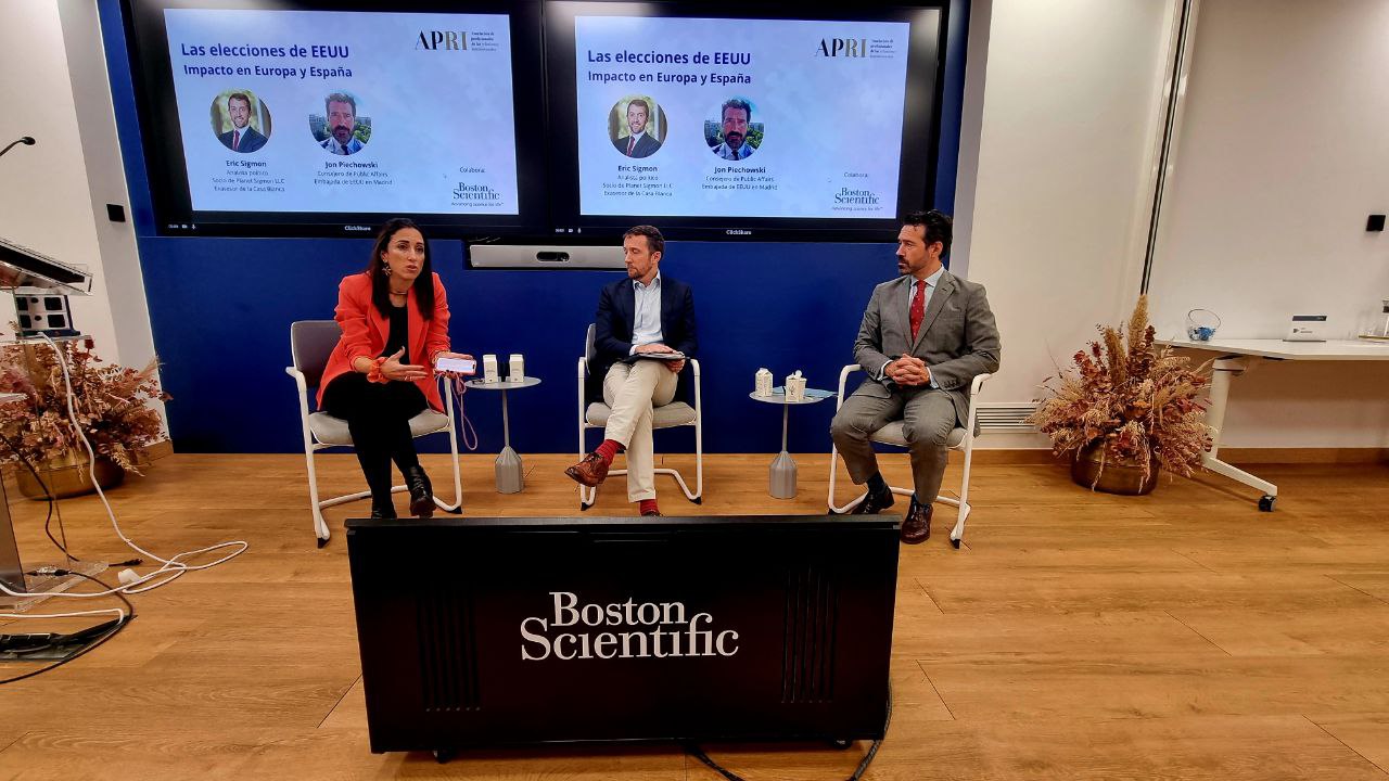 ¿Qué tenemos que saber en Europa y España sobre las elecciones en Estados Unidos desde la perspectiva de los Asuntos Públicos? A una semana de los comicios, la respuesta a esta pregunta se antoja compleja, en tanto depende del cristal -del candidato- con que se mire. Para contribuir a despejar esta y otras dudas entre los profesionales del sector, la Asociación de Profesionales de las Relaciones Institucionales APRI ha organizado un evento en el sede madrileña del Boston Scientific, donde dos expertos han analizado el panorama, desde la diplomacia y la política.
