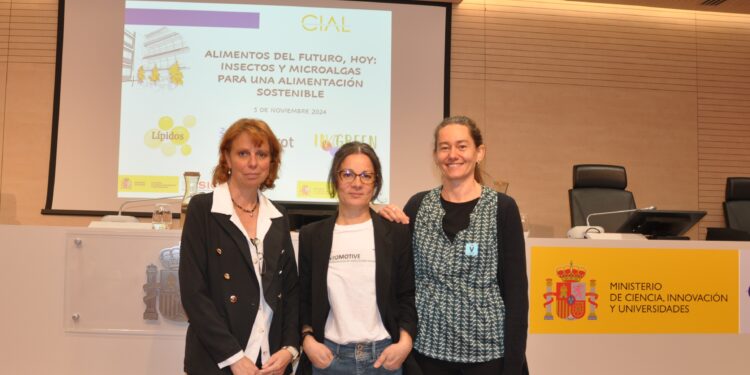 La Agencia Estatal de Investigación financia cada año con más de 1.200 millones de euros proyectos de investigación e innovación muchos de ellos en el campo de la alimentación. Entre ellos, se encuentra el proyecto ENTOMOTIVE. Uso de insectos para la bioconversión de residuos agroalimentarios en productos de alto valor añadido ricos en compuestos bioactivos para salud humana y animal, liderado por Diana Martín García, de la Universidad Autónoma de Madrid (UAM) e investigadora del CIAL, y por Mª Dolores Hernández, del Instituto Murciano de Investigación y Desarrollo Agrario y Medioambiental (IMIDA), y en el que también participan investigadores de la Universidad de Almería (UAL). Diana Martín ha sido una de las ponentes del evento. Según ha afirmado, el objetivo del proyecto ENTOMOTIVE es “generar nuevo conocimiento científico sobre el potencial de los insectos comestibles como fuente novedosa de ingredientes para la salud, demostrando que tales propiedades pueden potenciarse en el contexto de una economía circular, alimentando a los insectos con subproductos agroalimentarios inexplorados y ricos en compuestos bioactivos”.