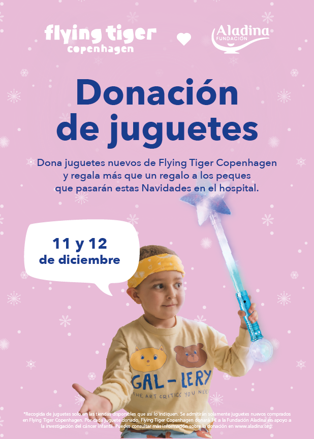 Los días 11 y 12 de diciembre, la marca danesa habilitó 12 tiendas en España para que sus clientes puedan donar los juguetes adquiridos en tiendas de Flying Tiger Copenhagen. Los juguetes serán destinados directamente a la fundación, haciéndolos llegar a niños, niñas y adolescentes enfermos de cáncer. Además, la compañía danesa donará un euro por cada juguete de la marca donado por sus clientes.