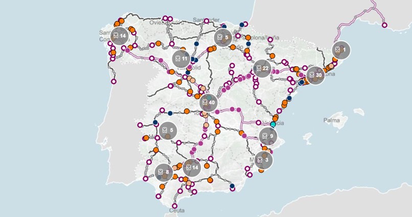1.-Información en tiempo real de todos los trenes en circulación sobre el mapa de la red ferroviaria. Además, se puede consultar la ruta por la que circula el tren y cuál es el recorrido.