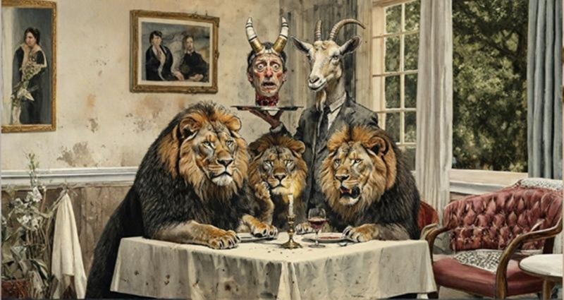 رأيت أكتاف الصيادين كأنها مؤخرات قرود البابون. كانوا يتباهون بها بعد اصطيادهم ميدالية ذهبية – أحيانًا كانت طيور الحجل (هههههههه) -… كان الأمر مضحكًا للغاية. كان لدى اثنين من حراس الصيد، كما تعلمون، فلاحين من السبعينيات، ثور فائز بميدالية ذهبية في المجمد، يتميز بصفاته وزخارفه العظمية. وكان زملاؤهم في الريف يعلنون عن رحلات صيد غير مشروعة مع أموال نقدية وأرباح فاضحة. كانوا يأتون من جميع أنحاء أوروبا للصيد، ويُبقونهم يركضون في الريف لثلاثة أو أربعة أيام حتى تنكسر أرجلهم. في البداية، أشار أحد الحراس إلى صخرة تبرز منها بعض القرون… قالوا للرجال الذين مدوا أرجلهم: “غدًا سنعود لأكبر وغد في جبال كازورلا”. انتظروا حتى اليوم التالي، وأزالوا القرون اللزجة، ووضعوا الحيوان المُجمد في وضعية دفاعية متغطرسة، وخيطوا جفونه لتعكس ضوء الفجر، وثبتوه بآلية – عصا وحبل لسحب الوحش – ليسقط في قاع وادٍ عميق، وأخبروا الصياد غير الشرعي أنهم سيقطعون رأسه في اليوم التالي… هل سيفعلون؟ أو سيضطرون لقتل الدببة الثملة – أقصد، الثملات – أو الأفيال العرجاء المرتبكة، أو الأفيال طويلة الأرجل – تلك التي تبدو بلا صدر…