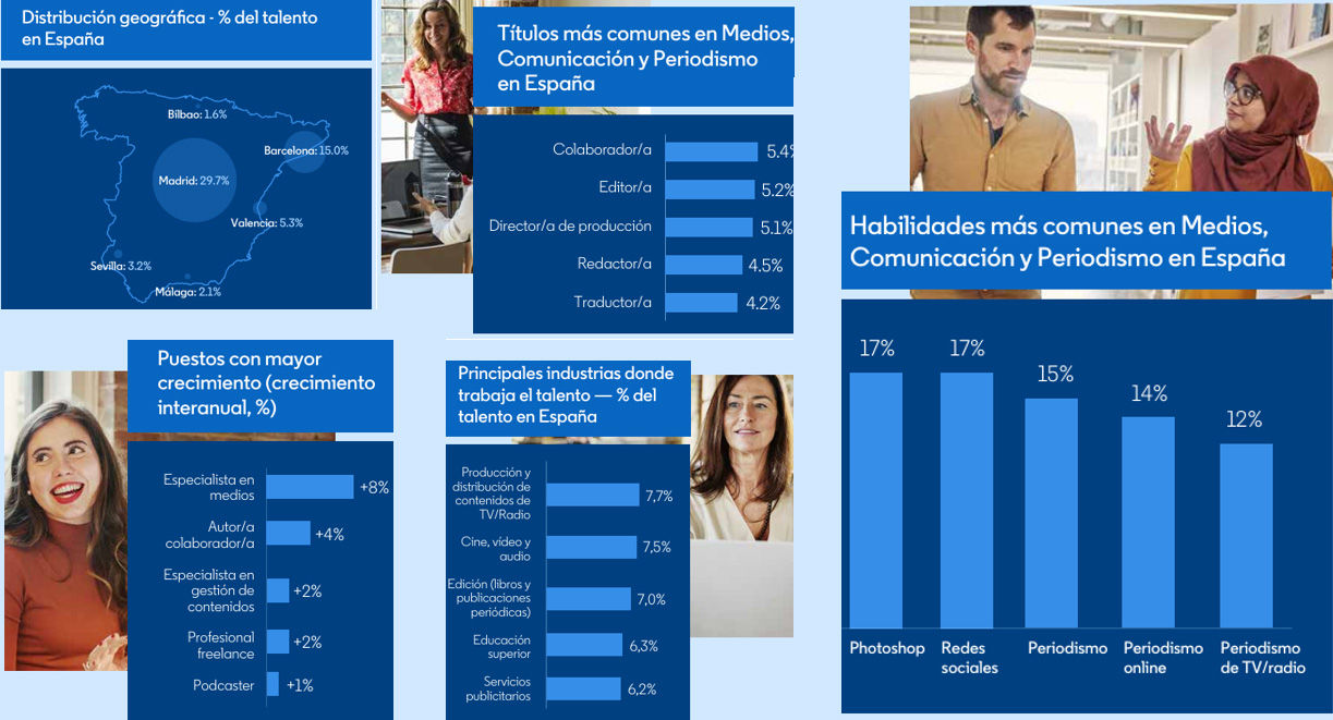 Lo vemos, sobre todo, como una plataforma capaz de aportar visibilidad, contexto y oportunidades. Y este informe es una buena prueba de ello, porque es el primer análisis propio de LinkedIn centrado en el talento de Medios, Comunicación y Periodismo en España y ofrece una radiografía muy clara de hacia dónde está evolucionando el mercado: más distribución, más formatos audiovisuales, más analítica, más perfiles híbridos y más oportunidades fuera del núcleo tradicional de medios. Nuestra ambición es acompañar esa evolución ayudando a los profesionales a entender mejor el mercado, reforzar su posicionamiento y conectar con nuevas oportunidades en un ecosistema cada vez más transversal.